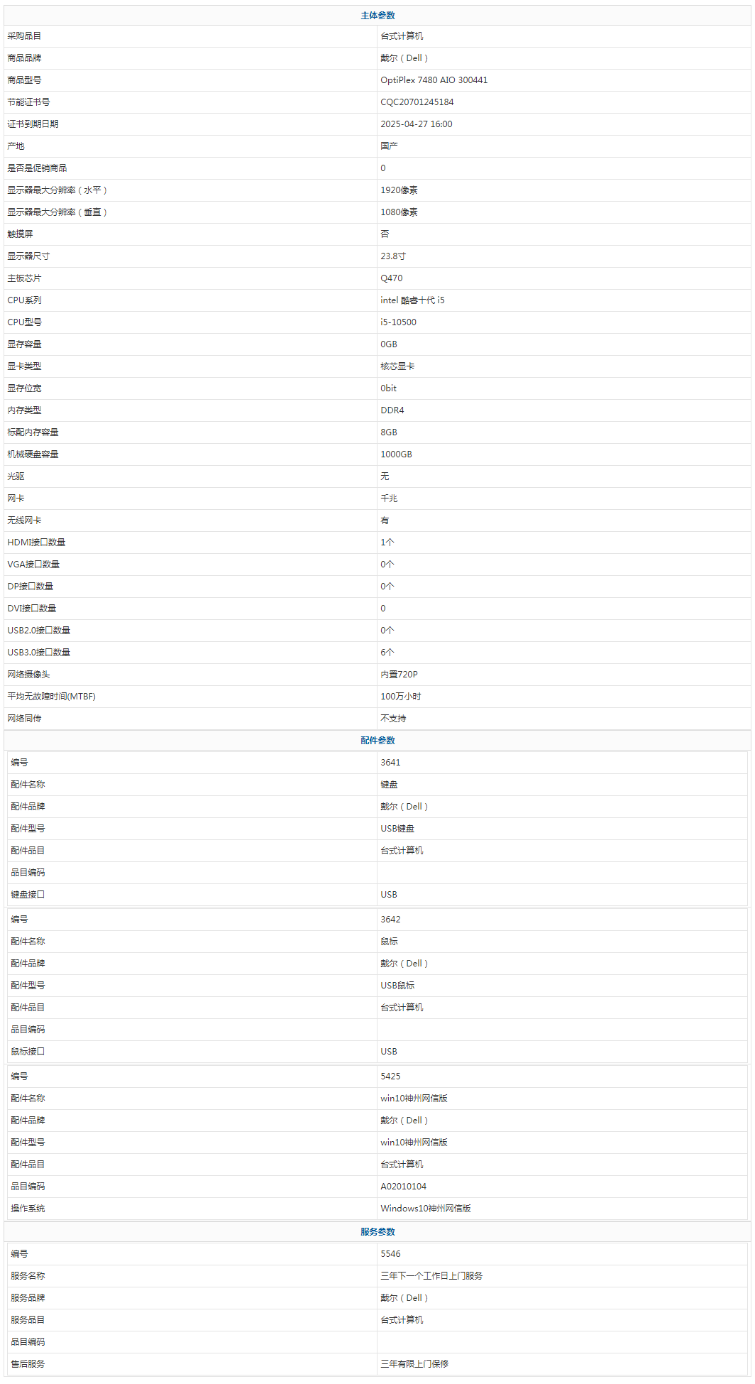 • 商品名稱:戴爾(Dell) OptiPlex 7480 AIO 300441 intel 酷睿十代 i5 i5-10500 8GB 1000GB Windows10神州網(wǎng)信版 23.8寸 三年有限上門保修
