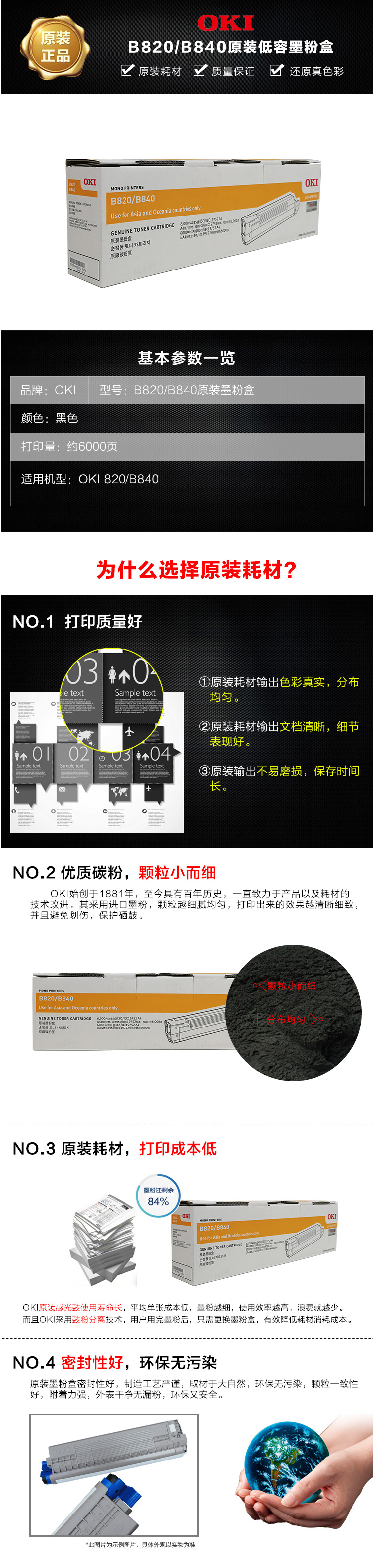 • 商品名稱:OKI B820/B840 黑色粉盒 6000頁打印量 適用機型:B820/B840