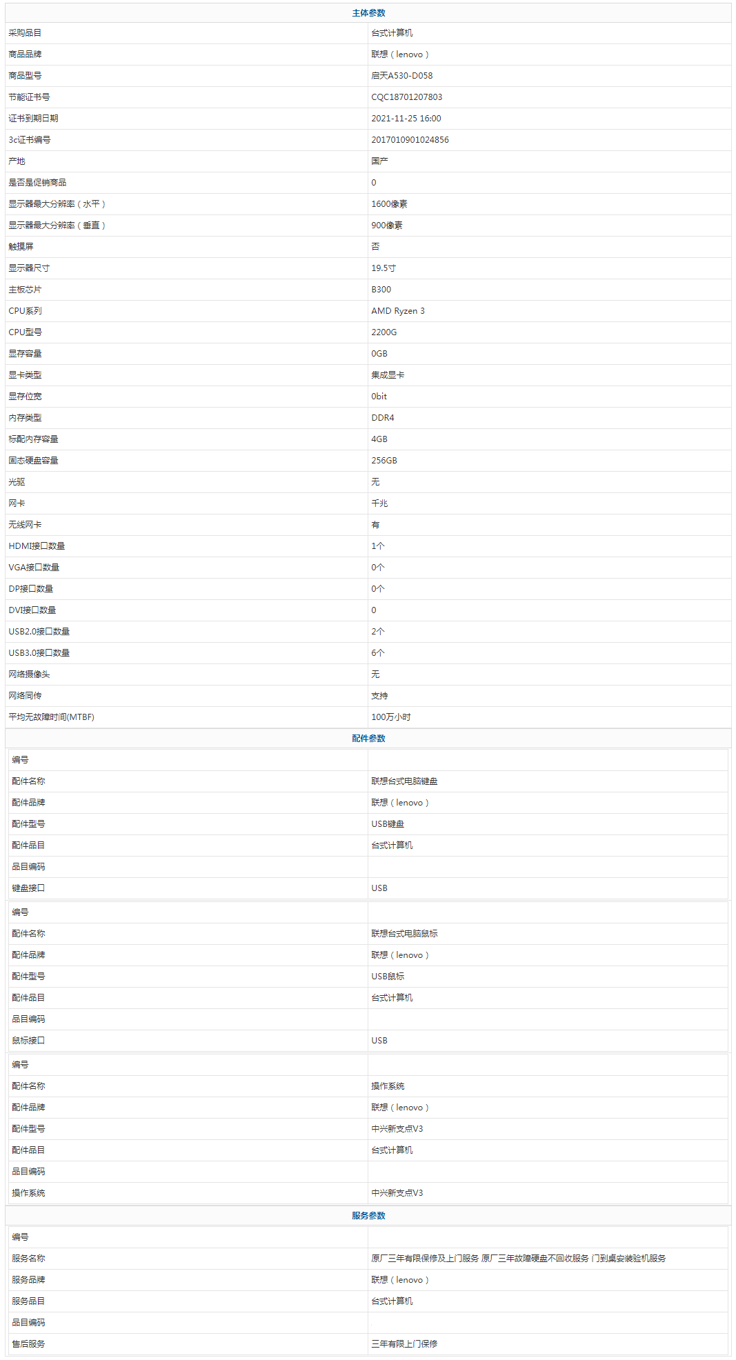 - 商品名稱:聯(lián)想(lenovo) 啟天A530-D058 AMD Ryzen 3 2200G 4GB 256GB 中興新支點V3 19.5寸 三年有限上門保修