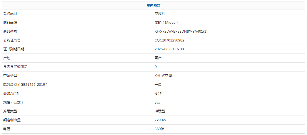 - 商品名稱:美的(Midea) KFR-72LW/BP3SDN8Y-YA401(1) 3匹 6年 新能效 一級