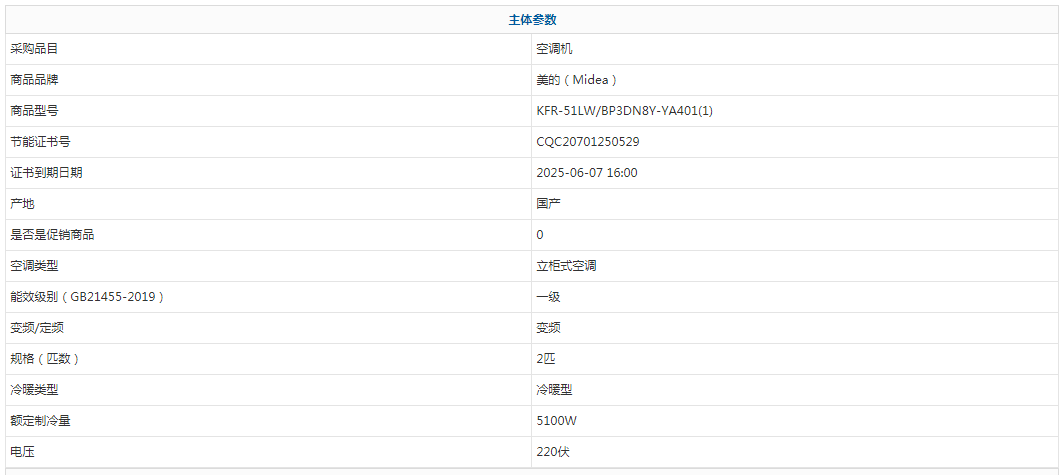 - 商品名稱:美的(Midea)KFR-51LW/BP3DN8Y-YA401(1) 2匹冷暖變頻柜機