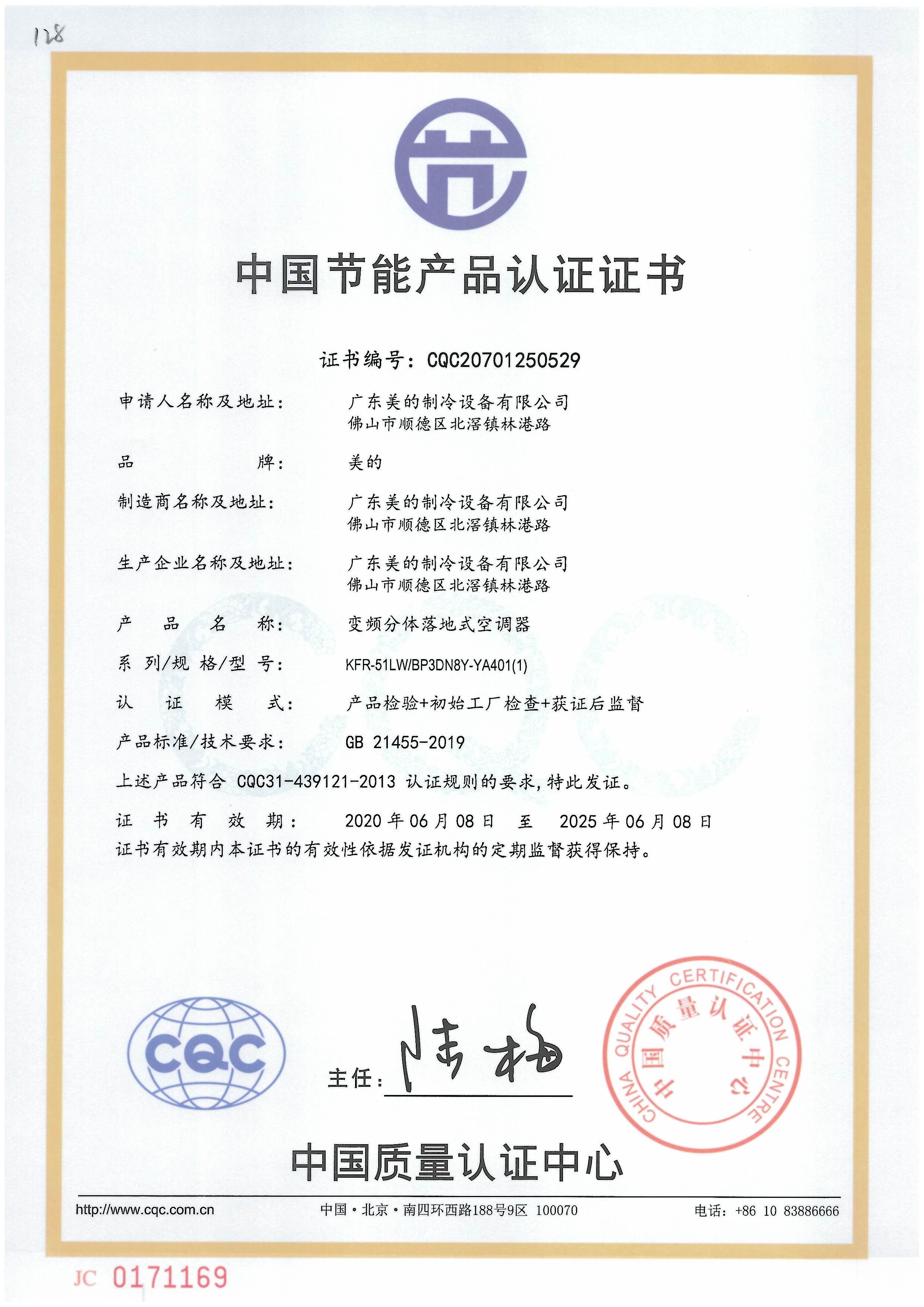 - 節(jié)能產(chǎn)品證書編號:CQC20701250529