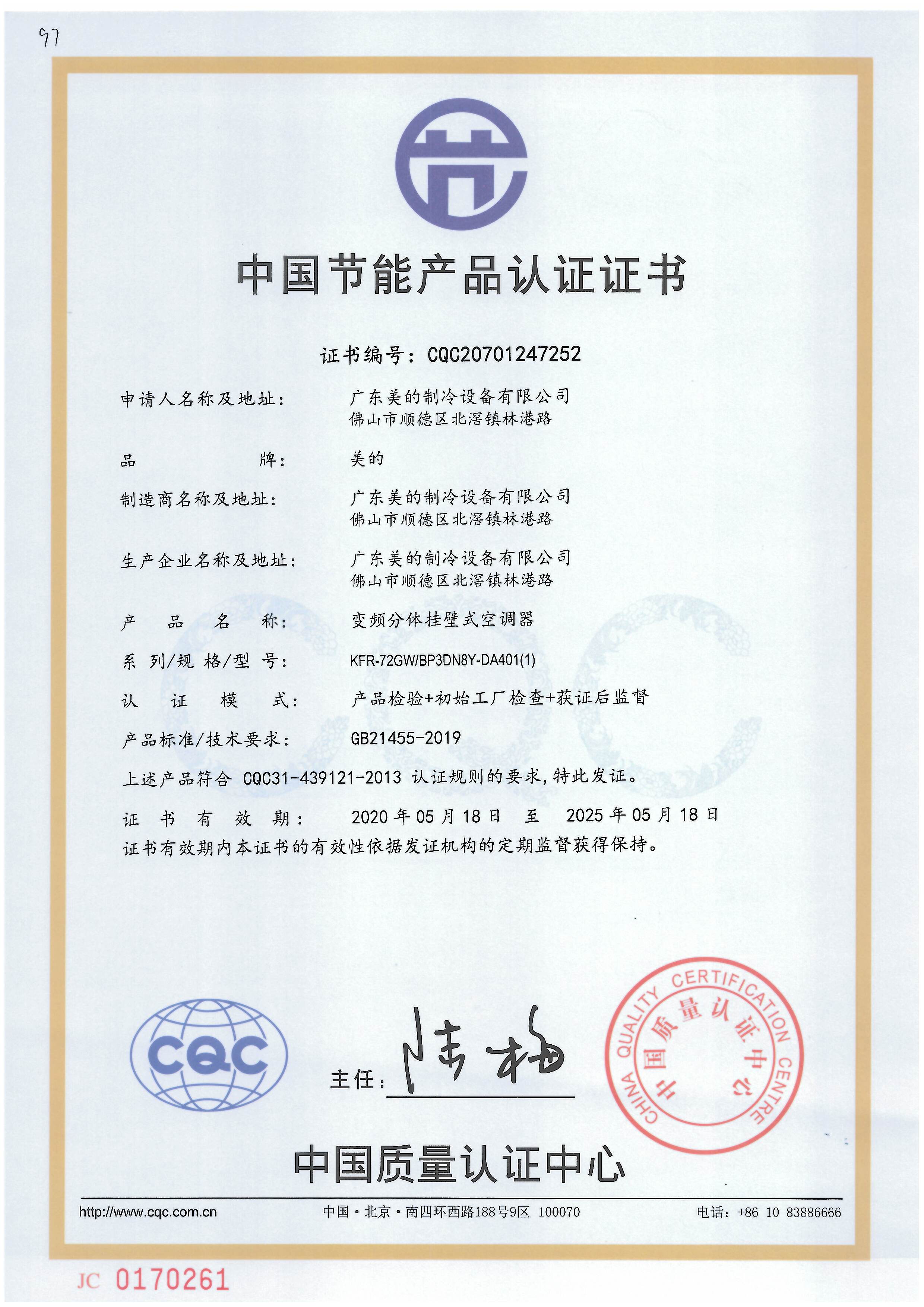 • 節(jié)能產(chǎn)品證書編號(hào):CQC20701247252