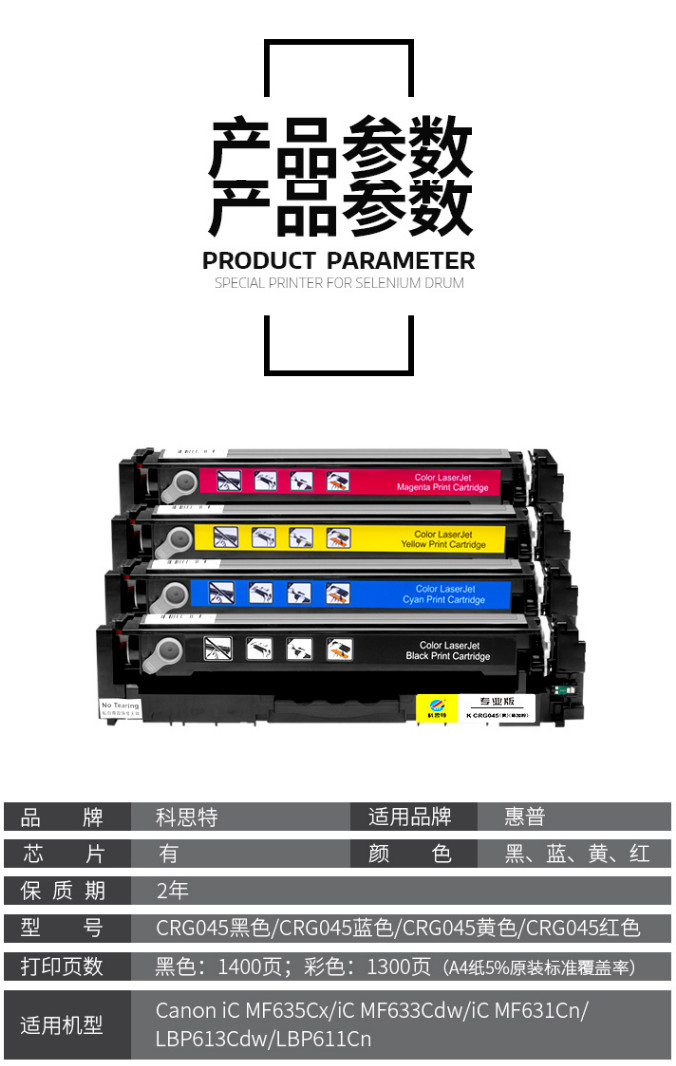 • 商品名稱:科思特CRG045M紅色硒鼓 打印量約1300頁 適用佳能 iC MF635Cx/iC MF633Cdw/iC MF631Cn 專業(yè)版