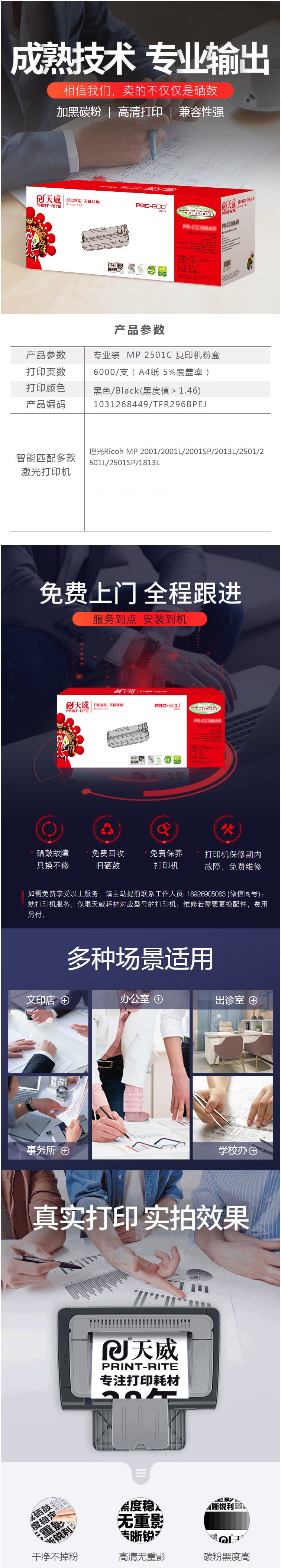 • 商品名稱:天威(PrintRite)MP 2501C黑色粉盒 專業(yè)裝 打印量約6000頁 適用理光Ricoh MP 2501L/SP 2001L/SP等