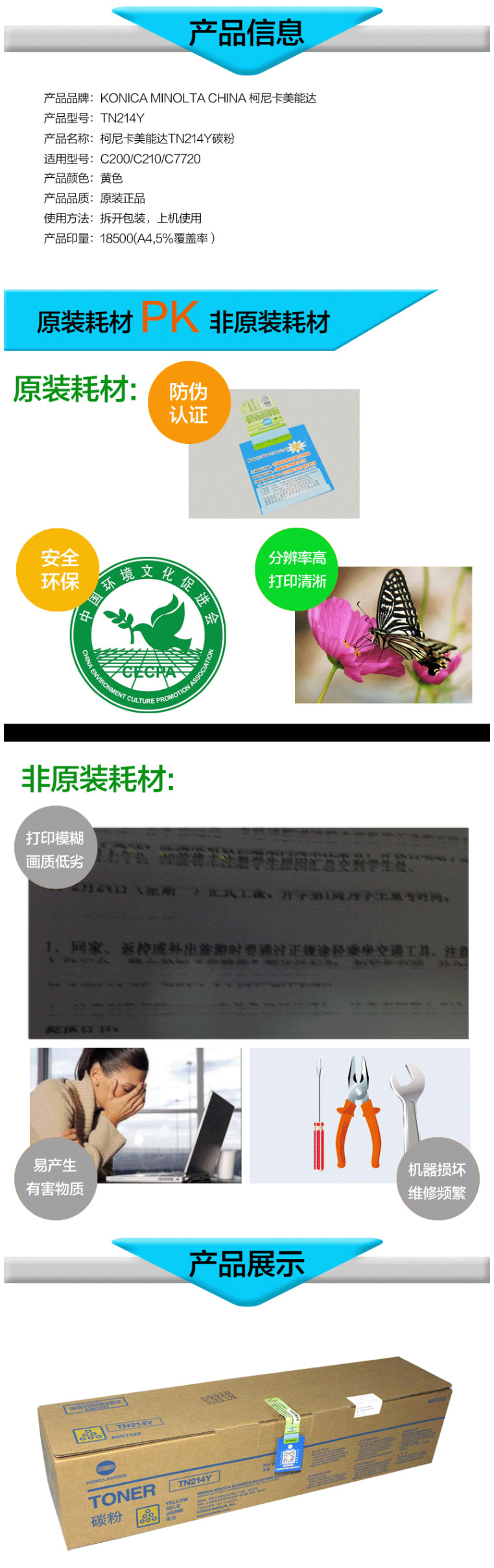 • 商品名稱(chēng):柯尼卡美能達(dá)(KONICA MINOLTA)TN214Y 黃色標(biāo)準(zhǔn)容量碳粉 約18500頁(yè) 適用C200/C210/C7720機(jī)型