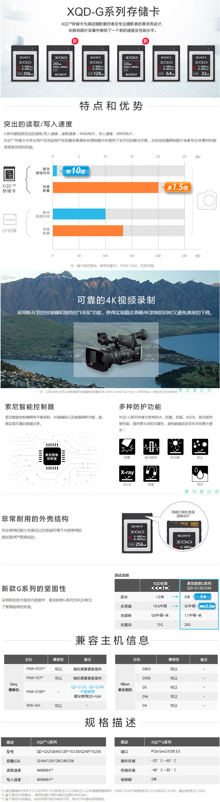• 商品名稱:索尼(SONY)XQD存儲卡QD-G120F 120G內存卡 440MB/s讀取速度