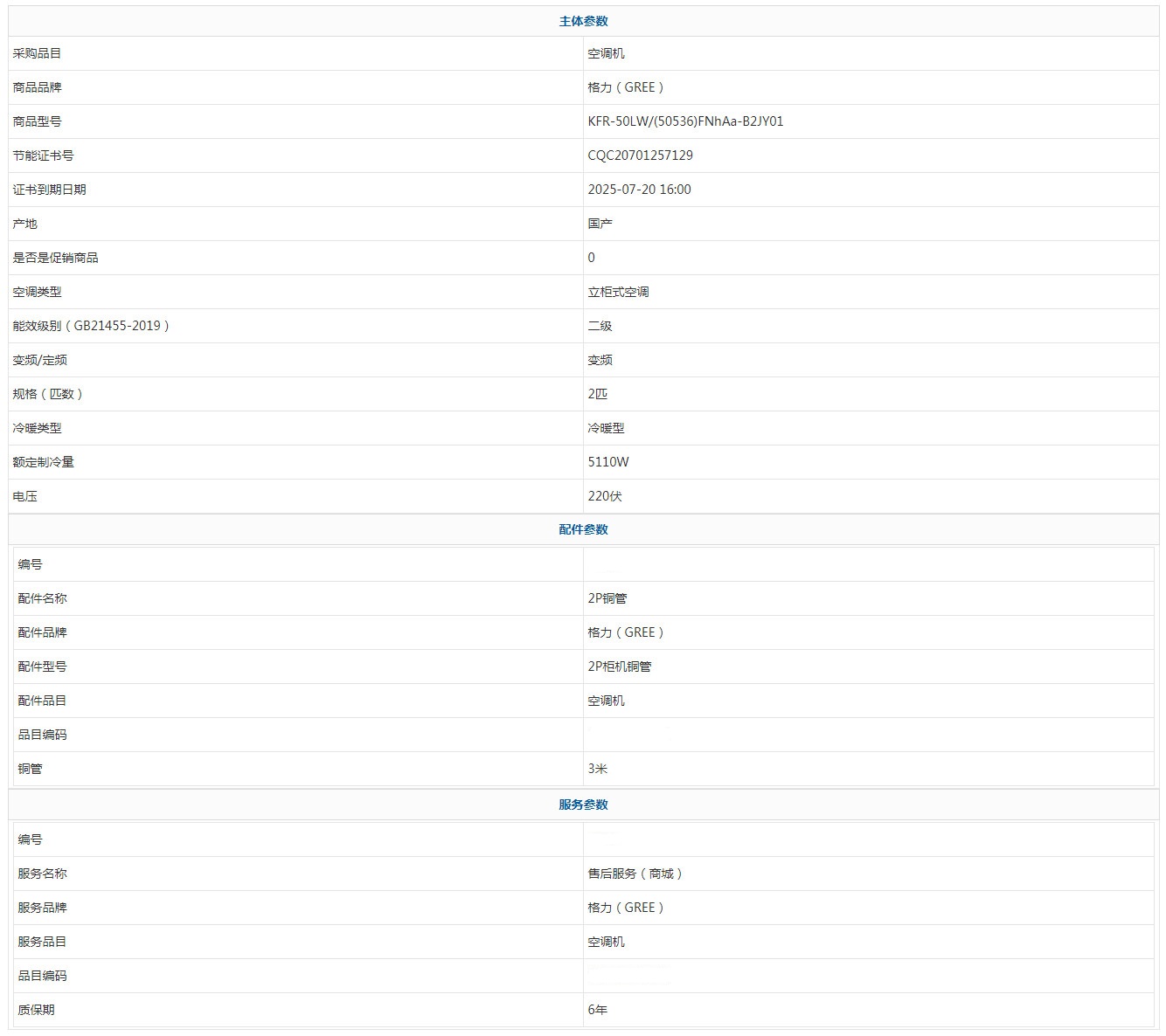 - 商品名稱:格力(GREE) KFR-50LW/(50536)FNhAa-B2JY01 2匹 6年 新能效 二級(jí)