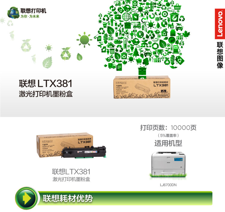 聯(lián)想(Lenovo)LTX381原裝黑色墨粉 約10000頁 適用LJ6700DN打印機(jī)