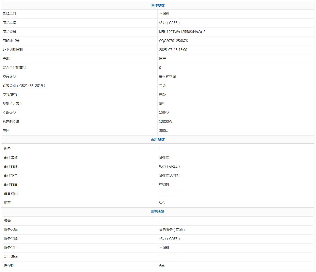 - 商品名稱:格力(GREE) KFR-120TW/(12550S)NhCa-2 5匹 6年 新能效 二級(jí)