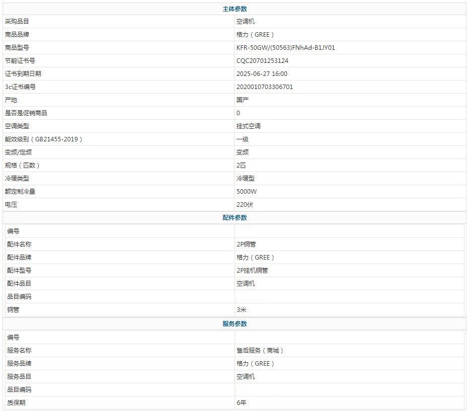 • 商品名稱:格力(GREE) KFR-50GW/(50563)FNhAd-B1JY01 2匹 6年 新能效 一級