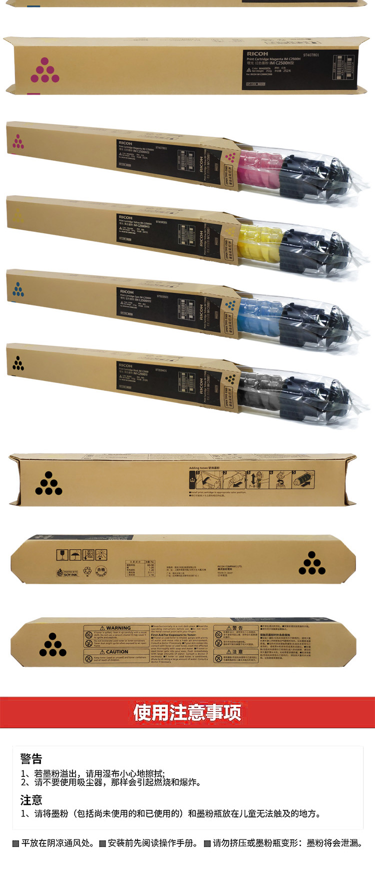• 商品名稱:理光(Ricoh)IM C2500 墨粉盒 黑/紅/藍(lán)/黃四色大容套裝 適用于IM C2000/C2500