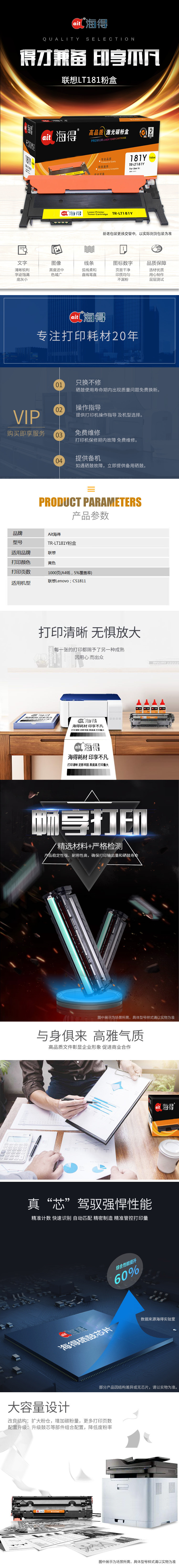 • 商品名稱:海得 AIT-LT181Y黃色墨粉盒 約1000頁 適用聯(lián)想Lenovo CS1811彩色打印機