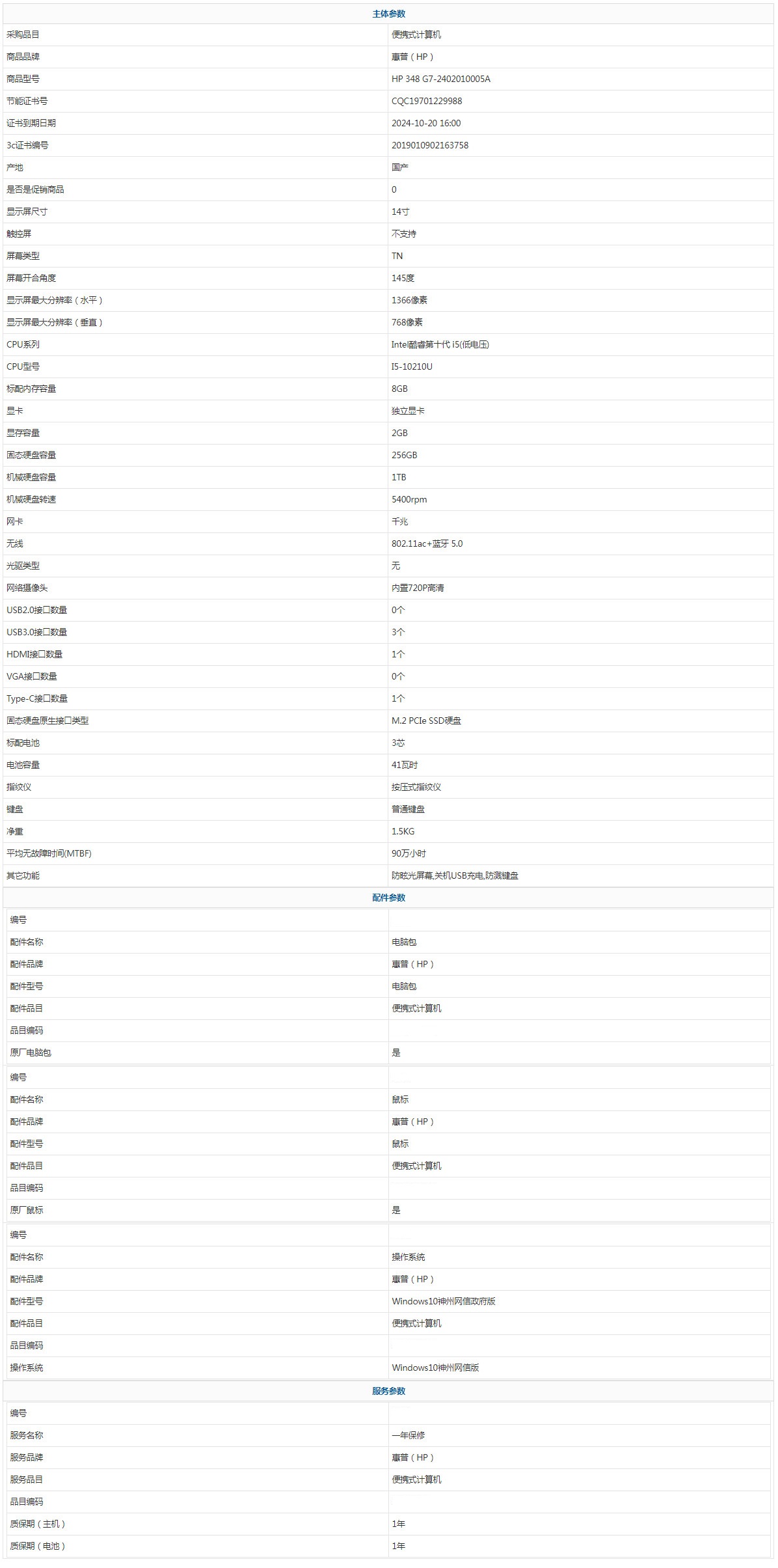 - 商品名稱:惠普(HP) HP 348 G7-2402010005A Intel酷睿第十代 i5(低電壓) I5-10210U 8GB 1TB 256GB Windows10神州網(wǎng)信版 14寸 1年