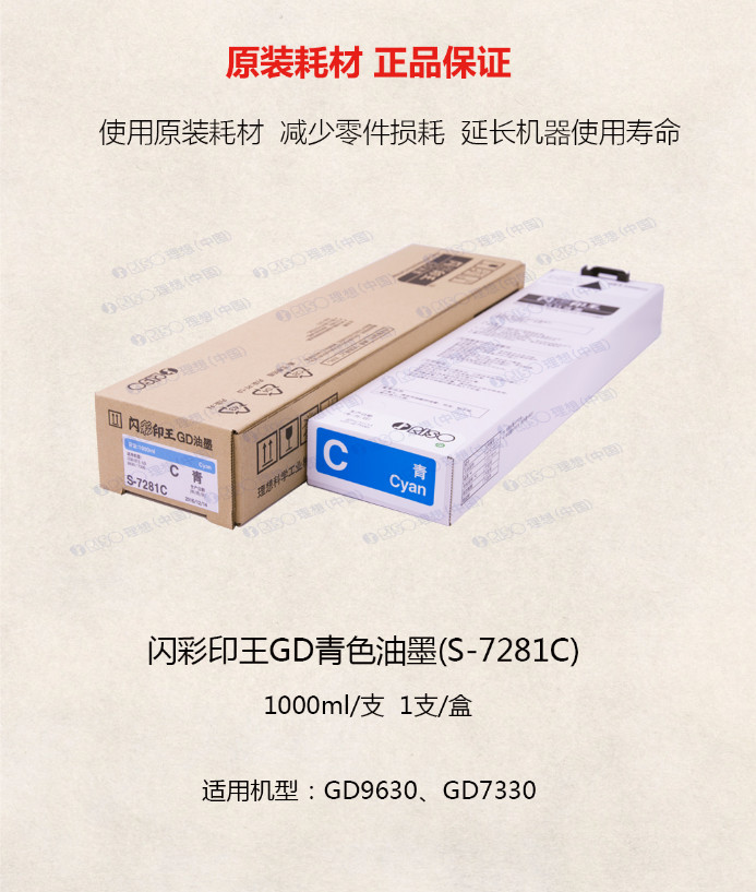 • 商品名稱:理想 (RISO)S-7281C閃彩印王青油墨 適用于GD9630/7330