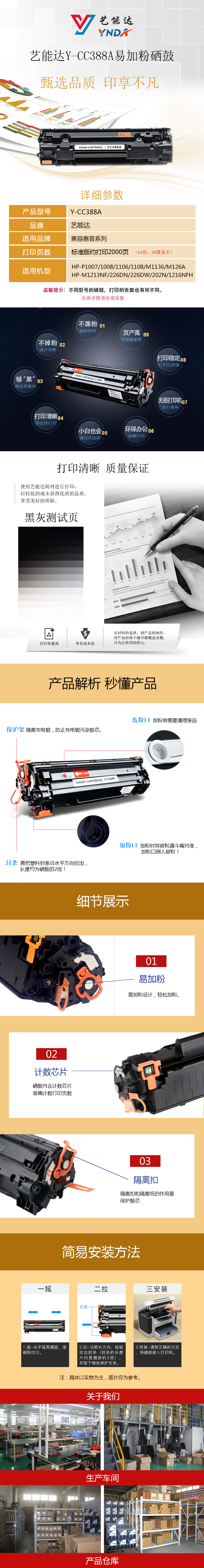 • 商品名稱:藝能達 Y-CC388A 黑色硒鼓 約2000頁 適用于HP P007/1008/1106/1108/M1136/126A等機型
