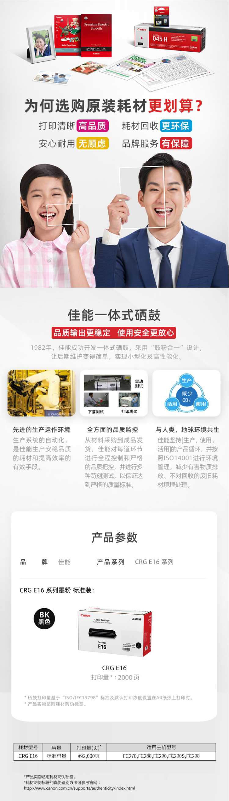 • 商品名稱:佳能(Canon) E-16 黑色硒鼓 打印量2000頁 適用于FC270,FC288,FC290,FC290S,FC298