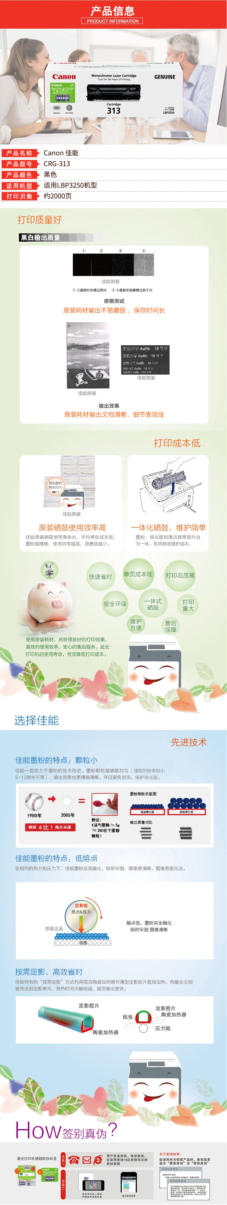 • 商品名稱:佳能(Canon) CRG 313 黑色硒鼓 打印量2000頁 適用于LBP3250