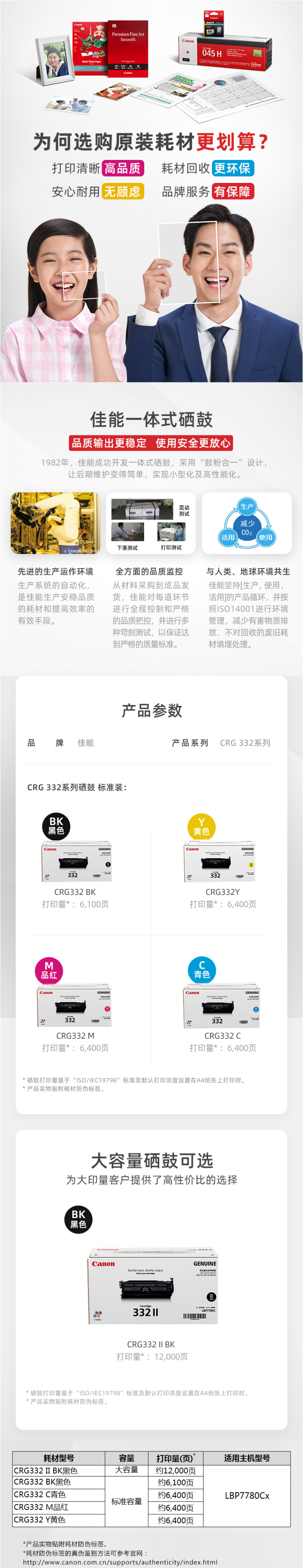 • 商品名稱:佳能(Canon) CRG332 BK 黑色硒鼓 印量約6100頁