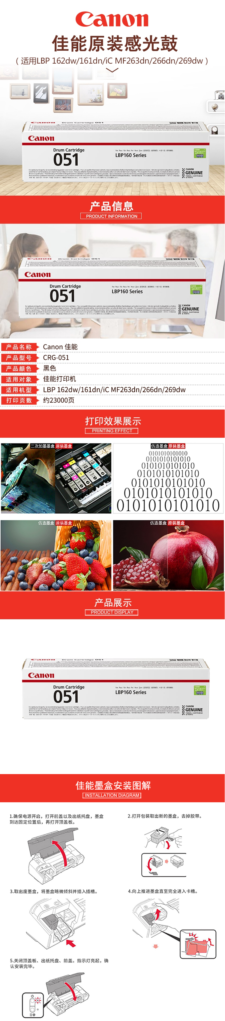 • 商品名稱:佳能(Canon) Drum CRG 051 黑色感光鼓 打印量23000頁 適用于LBP162DW,LBP161DN,MF269DW,MF266DN,MF263DN