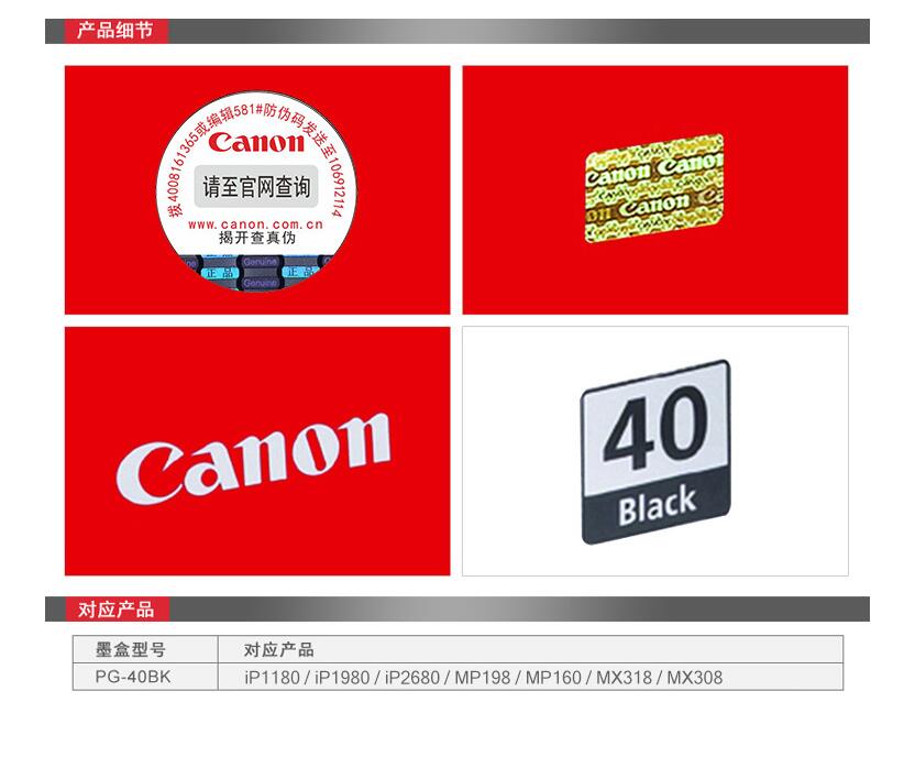 佳能(Canon) PG-40 BK 黑色墨盒 印量約760頁