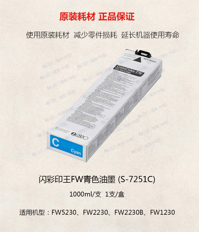 • 商品名稱:理想( RISO )S-7251C閃彩印王青油墨 適用于FW5230/2230/2230B/1230機(jī)型