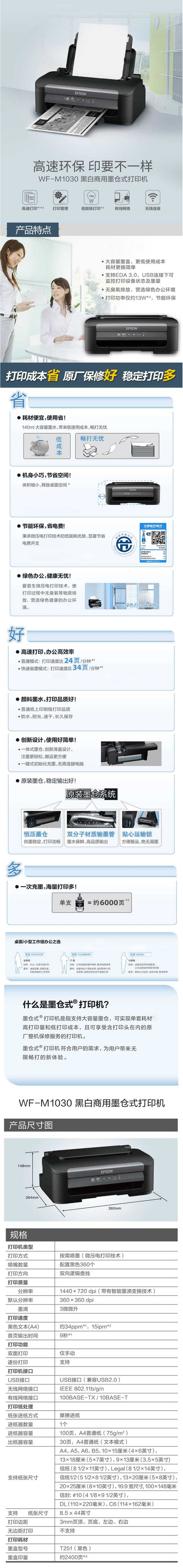 • 商品名稱:愛普生(EPSON)WF-M1030 墨倉式黑白噴墨打印機
