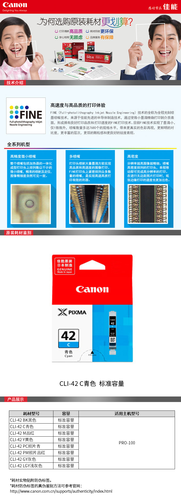 佳能(Canon) CLI-42 BK ASA 黑色墨盒 打印量810頁(yè) 適用于PRO-100