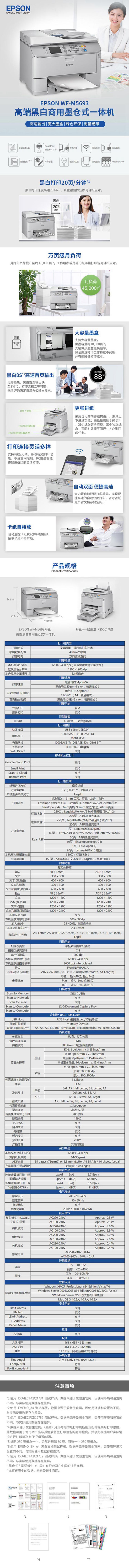 • 商品名稱:愛普生(EPSON)WF-M5693黑白商用墨倉式一體機(jī)