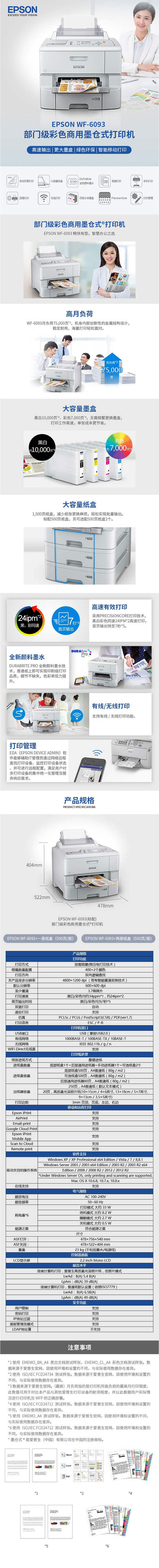 - 商品名稱:愛(ài)普生(EPSON)WF-6093 彩色商用墨倉(cāng)式打印機(jī)加單紙盒