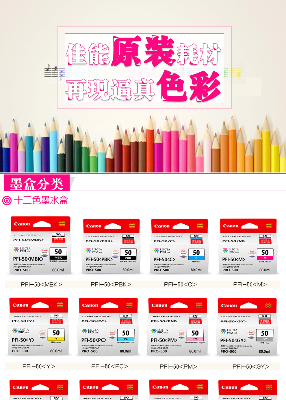 • 商品名稱:佳能(Canon) PFI-50 MBK 亞光黑色墨盒 打印量1960頁 適用于imagePROGRAF PRO-500