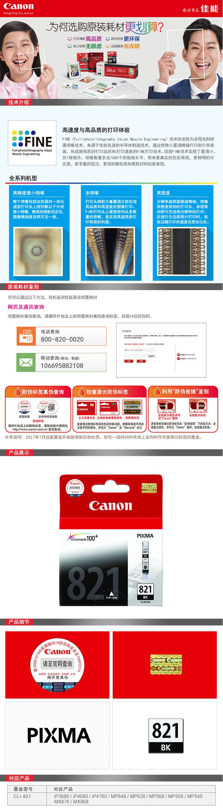 • 商品名稱:佳能(Canon) CLI-821 Bk 黑色墨盒 打印量-頁 適用于iP3680、iP4680、iP4760、MP568、MP558、MP545、MX876、MX868