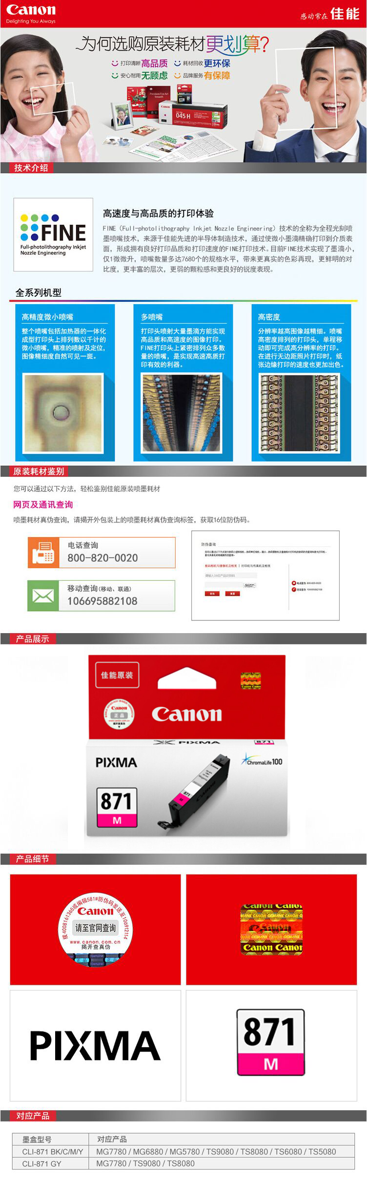 • 商品名稱:佳能(Canon) CLI-871 M 紅色墨盒