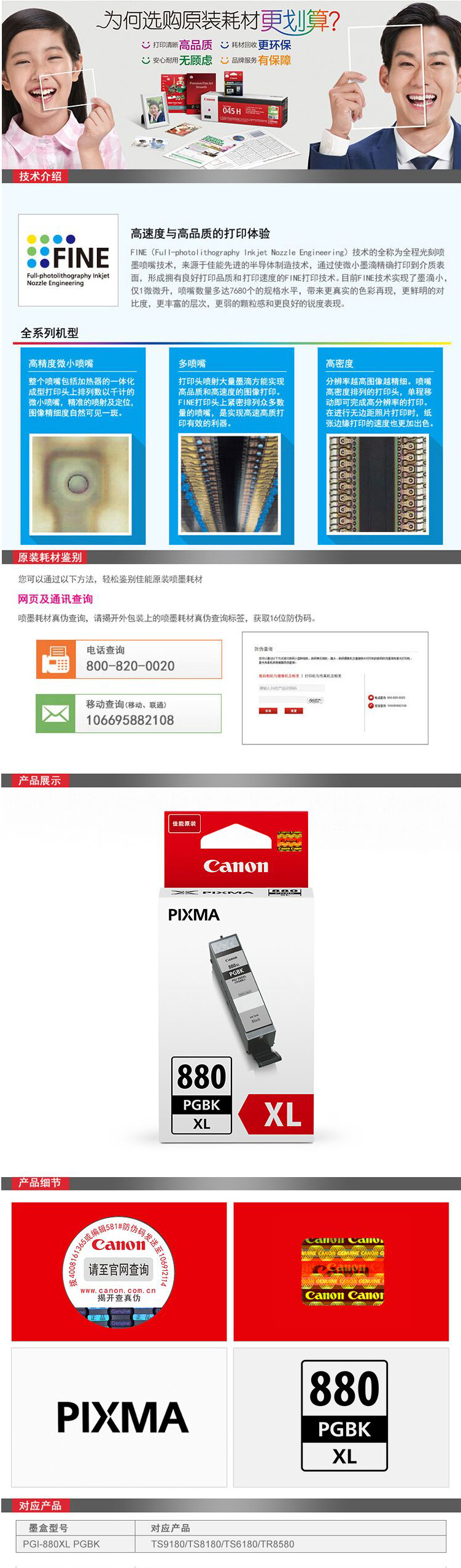 • 商品名稱:佳能(Canon) PGI-880XL PGBK 大容量黑色墨盒