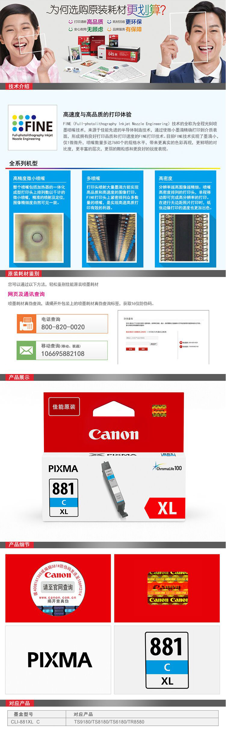 佳能(Canon) CLI-881XL C 大容量青色墨盒頁
