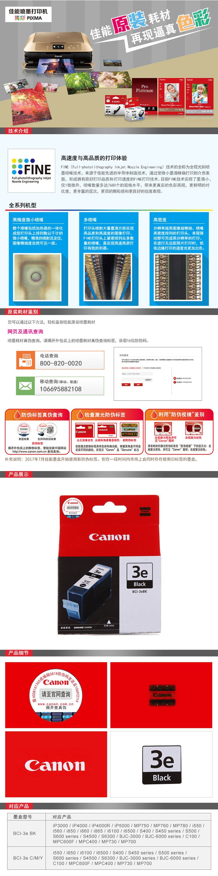 • 商品名稱:佳能(Canon) InkTank BCI-3e BK 黑色墨盒 打印量-頁 適用于i6500/i6100 MP730
