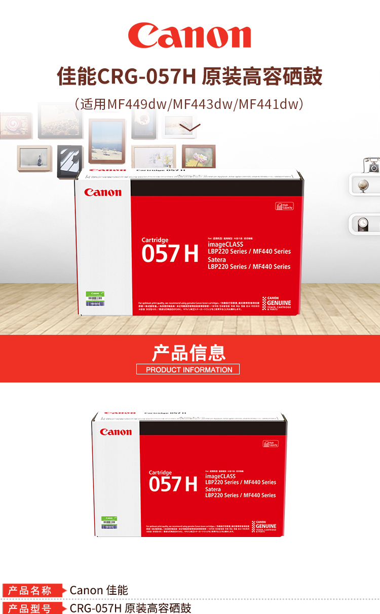 • 商品名稱:佳能(Canon) CRG-057 H 高容黑色硒鼓 印量約10000頁
