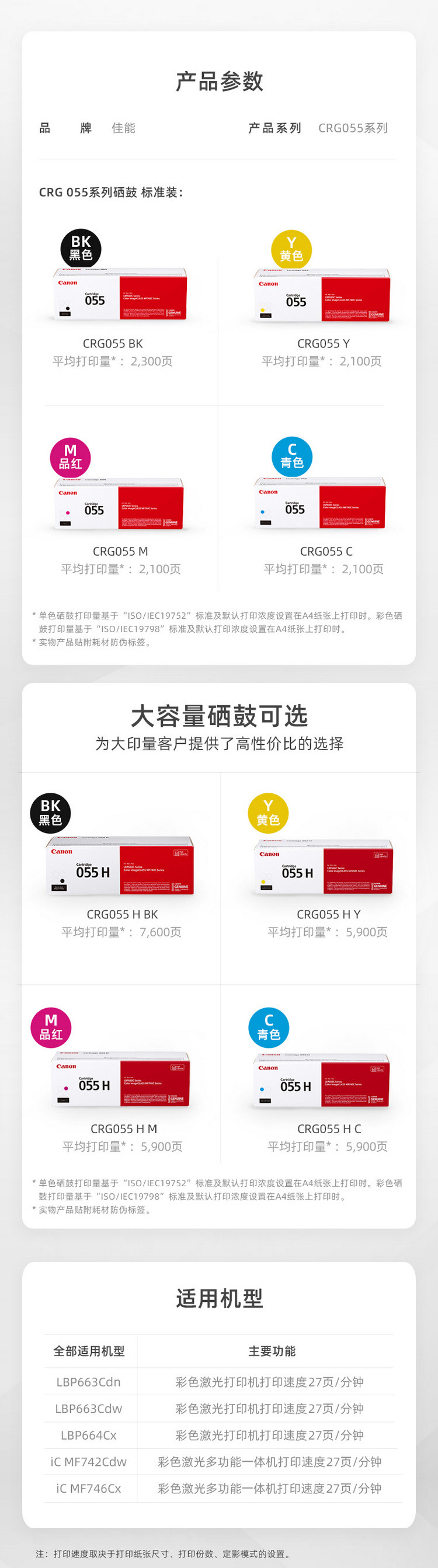 • 商品名稱:佳能(Canon) CRG055 H BK 大容量黑色硒鼓