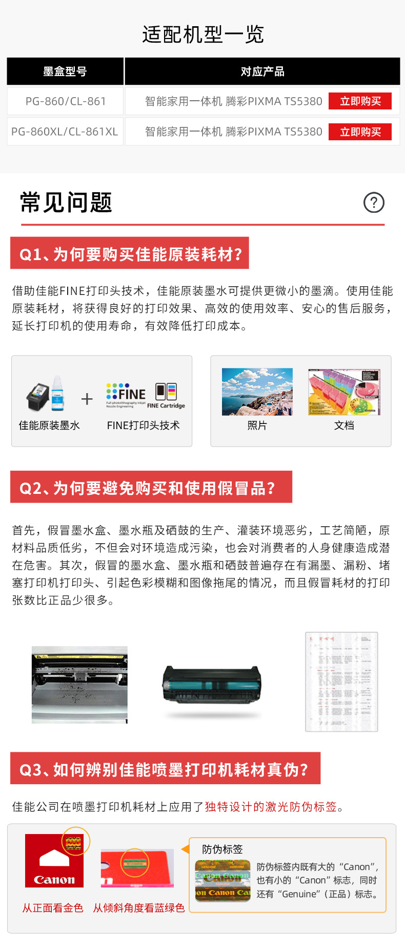 • 商品名稱:佳能(Canon) CL-861 彩色墨盒 打印量180頁