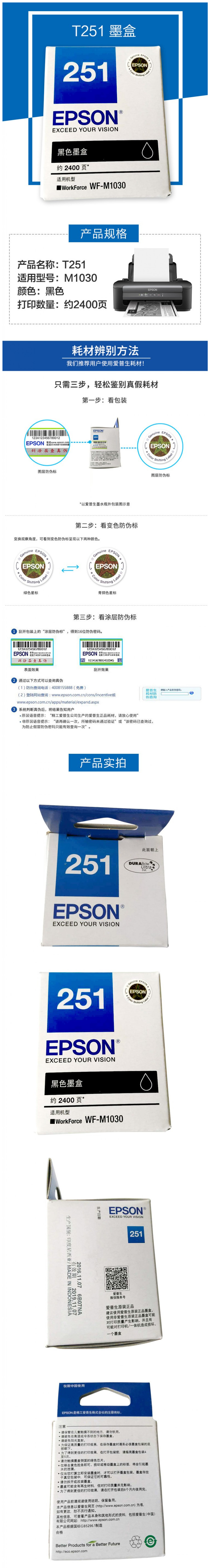 • 商品名稱:愛普生(EPSON)T251黑色原裝墨盒 適用WF-M1030機器