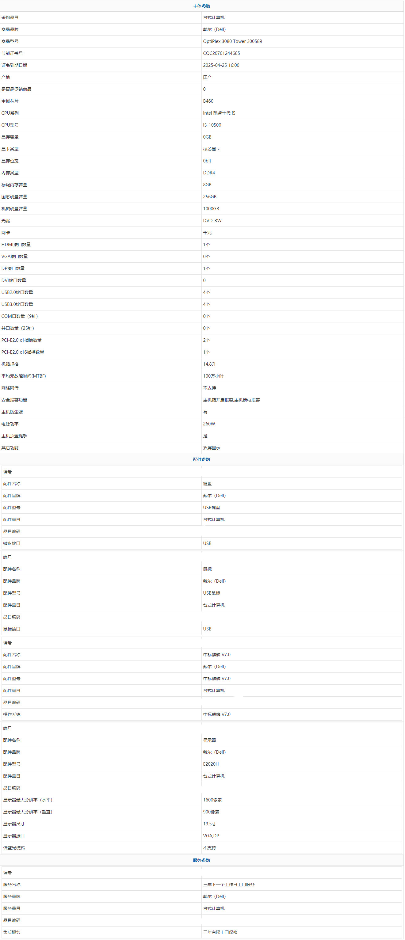 - 商品名稱:戴爾(Dell) OptiPlex 3080 Tower 300589 intel 酷睿十代 i5 i5-10500 8GB 1000GB 256GB 中標麒麟 V7.0 19.5寸 三年有限上門保修